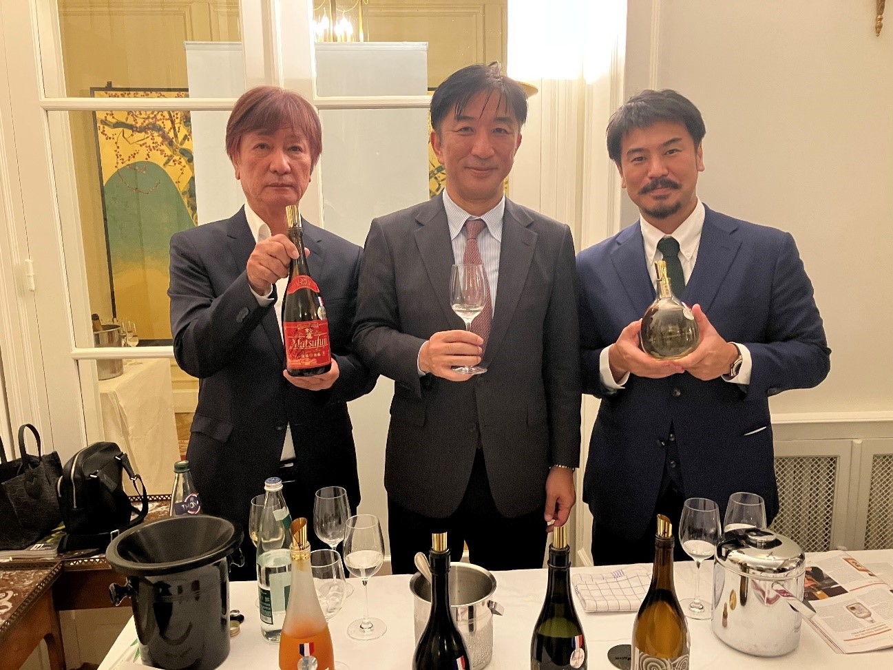 On September 26, Ambassador Kano hosted at his Residence a tasting of Japanese spirits, such as sake, shochu, awamori, umeshu (plum liqueur), and Japanese wines, awarded at the 9th Kura Master competition. Many guests, including representatives from the UNESCO Secretariat and Permanent Delegates to UNESCO, attended the event. The Kura Master Association, organizer of the competition, and the winning producers of this year's competition also participated in the event, which gave rise to lively exchanges among the participants.