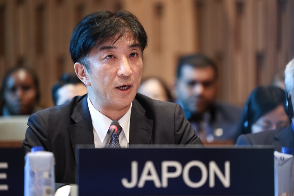 6 octobre 2025 : Discours de Son Excellence M. KANO Takehiro à la 222e session du Conseil exécutif de l’UNESCO (PDF) 26 septembre 2025 : Dégustation des alcools japonais primés au concours Kura Master 24 septembre 2025 : Participation de l'Ambassadeur Kano à la Cérémonie de Remise des Prix du Concours « Kura Master » Cérémonie pour marquer l’achèvement de la campagne de restauration « Redécouvrir le Jardin de la Paix d’Isamu Noguchi » organisée au siège de l'UNESCO (12 septembre 2025) Cérémonie pour marquer l’achèvement de la campagne de restauration « Redécouvrir le Jardin de la Paix d’Isamu Noguchi » organisée au siège de l'UNESCO (12 septembre 2025) Médaille Dirac décernée aux professeurs Shinsei Ryu (Université de Princeton) et Tadashi Takayanagi (Université de Kyoto) (2 avril 2025) Evénement parallèle lors de la 221ème session du Conseil (7 avril 2025) exécutif « Soutien de l'UNESCO au renforcement de la résilience et à l'amélioration des systèmes d'alerte précoce » Déclaration nationale de Son Excellence M. KANO Takehiro à la 220ème Session du Conseil exécutif de l'UNESCO (7 avril 2025) Cérémonie d'ouverture de « Voyage créatif au Japon 2025 » (23 avril 2025) Le Japon renforce sa coopération pour la protection du patrimoine culturel en Afrique : participation de l’Ambassadeur Kano à une conférence à Nairobi et visite en Ouganda (6-9 mai 2025) Actualité go to list 2025/10/6 6 octobre 2025 : Discours de Son Excellence M. KANO Takehiro à la 222e session du Conseil exécutif de l’UNESCO (PDF) [147KB] 2025/10/2 2 octobre 2025 : Table ronde et Réception organisées par l’Ambassadeur Kano en collaboration avec l’UNESCO, visant à renforcer la coopération avec les PEID dans le domaine de la réduction des risques de catastrophes. 2025/10/1 1er octobre 2025 : Réception organisée par l'Ambassadeur Kano en l’honneur des Délégations des pays africains 2025/9/26 26 septembre 2025 : Dégustation des alcools japonais primés au concours Kura Master 2025/9/24 24 septembre 2025 : Participation de l'Ambassadeur Kano à la Cérémonie de Remise des Prix du Concours « Kura Master » 2025/9/18 18 septembre 2025 : Visite au Japon de Mme Audrey Azoulay, Directrice générale de l’UNESCO 2025/9/12 12 septembre 2025 : Cérémonie pour marquer l’achèvement de la campagne de restauration « Redécouvrir le Jardin de la Paix d’Isamu Noguchi » organisée au siège de l'UNESCO 2025/9/9 Conseil mondial des géoparcs de l'UNESCO - Recommandation pour la nouvelle désignation du Plateau karstique de Miné-Akiyoshidai, etc. (Lien externe) 2025/8/9 Répondre aux catastrophes par le biais du Fonds-en-dépôt japonais (réponse au tsunami provoqué par le séisme au large de la péninsule du Kamtchatka, etc.) 2025/6/24 24 juin 2025 : Réception annuelle « Soirée japonaise » go to list KANO Takehiro, Ambassadeur, Délégué permanent du Japon auprès de l’UNESCO Curriculum vitae [122KB] Message de Son Excellence Monsieur KANO Takehiro Discours Réseaux sociaux (en anglais) close Permanent Delegation of Japan to UNESCO Ambassador KANO Takehiro Patrimoine mondial au Japon Patrimoine culturel immatériel au Japon
