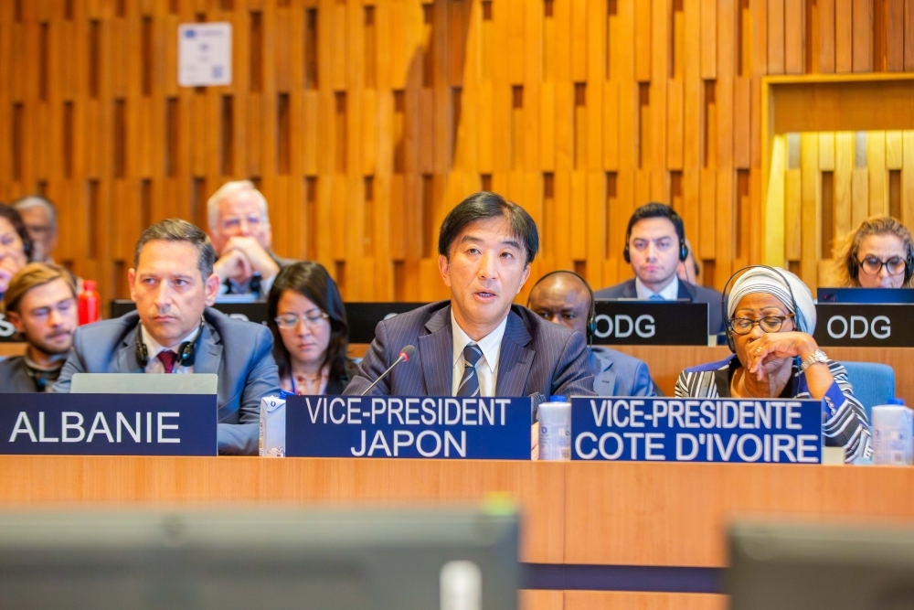 13 avril 2026 : Discours de Son Excellence M. KANO Takehiro à la 224e session du Conseil exécutif de l'UNESCO (PDF) 25 mars 2026 : Travaux d'entretien du « Jardin de la Paix » par la Japan Federation of Landscape Contractors et visite du jardin du Director-général El-Enany 23-24 mars 2026 : Conférences sur la Calligraphie japonaise par la Calligraphe TSUCHIHASHI Yasuko 16 janvier 2026 : Cérémonie du Thé Hatsugama 11 décembre 2025 : Décision d'extension de l'inscription sur la Liste représentative du patrimoine culturel immatériel de l’humanité 20 novembre 2025 : Réception commémorant le 80e Anniversaire de l’adoption de l’Acte constitutif de l’UNESCO, le 75e Anniversaire de l’adhésion du Japon à l’UNESCO et le 20e Anniversaire du soutien apporté par le JFIT à l’Education au développement durable 6 octobre 2025 : Discours de Son Excellence M. KANO Takehiro à la 222e session du Conseil exécutif de l’UNESCO (PDF) 26 septembre 2025 : Dégustation des alcools japonais primés au concours Kura Master 24 septembre 2025 : Participation de l'Ambassadeur Kano à la Cérémonie de Remise des Prix du Concours « Kura Master » Cérémonie pour marquer l’achèvement de la campagne de restauration « Redécouvrir le Jardin de la Paix d’Isamu Noguchi » organisée au siège de l'UNESCO (12 septembre 2025) Actualité go to list 2026/4/14 14 avril 2026 : Réception présentant le site « Anciennes capitales d'Asuka et de Fujiwara » en vue de son inscription prochaine sur la Liste du patrimoine mondial 2026/4/13 13 avril 2026 : Discours de Son Excellence M. KANO Takehiro à la 224e session du Conseil exécutif de l'UNESCO (PDF) [284KB] 2026/3/27 22-25 mars 2026 : Travaux d'entretien du « Jardin de la Paix » par la Japan Federation of Landscape Contractors et visite du jardin du Director-général El-Enany 2026/3/23 23-24 mars 2026 : Conférences sur la Calligraphie japonaise par la Calligraphe TSUCHIHASHI Yasuko 2026/3/12 12 mars 2026 : Projection du documentaire « Pionnières au Japon » 2026/2/10 10 février 2026 : Soutien du Japon à la Palestine par l'intermédiaire de l'UNESCO (cérémonie de signature) 10 février 2026 : Soutien du Japon à l'Ukraine à travers l'UNESCO (Cérémonie de signature) 2026/1/16 16 janvier 2026 : Cérémonie du Thé Hatsugama 2026/1/14 14 janvier 2026 : Réception du Nouvel An en l’honneur du personnel japonais de l’UNESCO et des journalistes japonais basés à Paris 2026/1/5 Voeux pour l’Année 2026 [144KB] go to list KANO Takehiro, Ambassadeur, Délégué permanent du Japon auprès de l’UNESCO Curriculum vitae [122KB] Message de Son Excellence Monsieur KANO Takehiro Discours Réseaux sociaux (en anglais) close Permanent Delegation of Japan to UNESCO Ambassador KANO Takehiro Patrimoine mondial au Japon Patrimoine culturel immatériel au Japon
